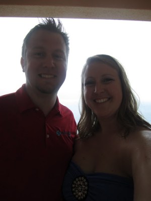 | Look at us looking all nice on the last night of our honeymoon. We were all set to go on a sunset cruise, but then it was lightning and stuff, and I read somewhere that it was kind of dangerous to be out in the middle of a body of water on a hunk of metal while it’s lightning. Needless to say, the resort cancelled our cruise. But at least we got a nice picture! |